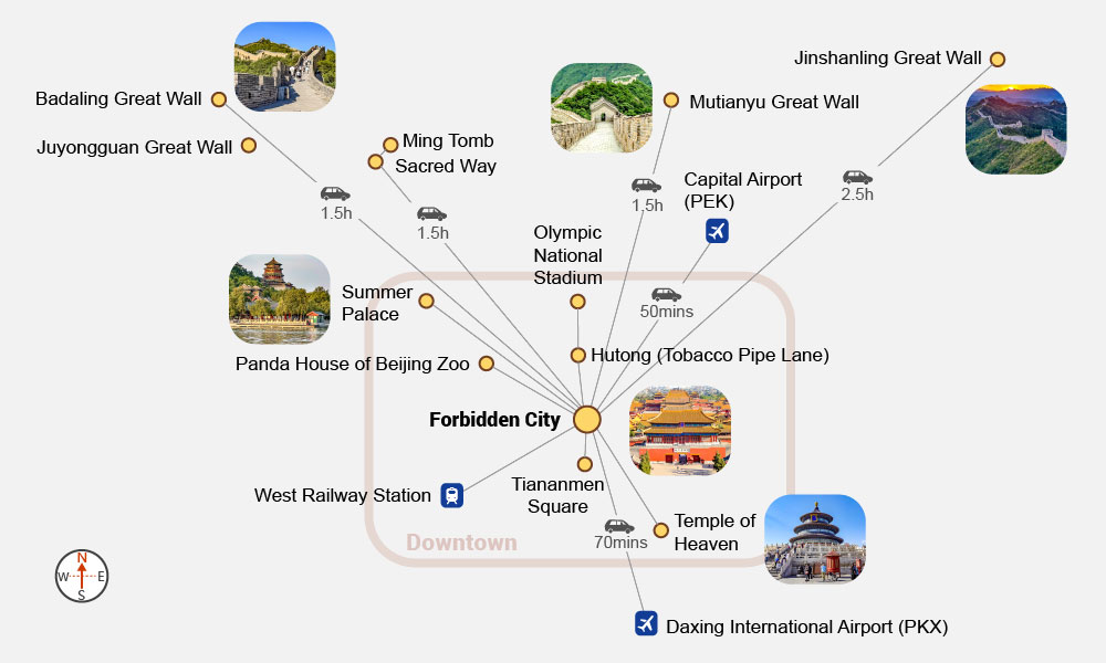 In addition to the arrival day and departure day, two or three full days are necessary for first-time travelers to arrange a Beijing local tour. Here is the most popular way of exploring the city. Have one full day to visit the Great Wall and the traditional Hutong alleys. Another full day is for city highlights sightseeing including the Forbidden City, Tiananmen Square and the Temple of Heaven. If you have ample time, you can schedule one more day to visit the Summer Palace, Lama Temple, Panda House and other sites.