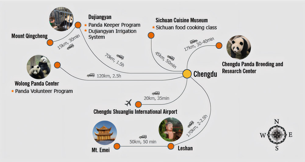 Nearest to Chengdu; available to visit many panda cubs and star pandas