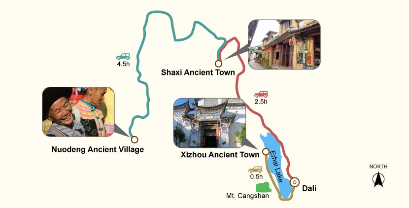 Have 5 days off? We will extend your itinerary to the Ancient Tea Horse Road for a dialogue with history. In Shaxi Ancient Town, the only remaining ancient market on the Road, chill yourself by exploring some literary and artistic studios or watching sunset on Yunjin Bridge. Then arrive at Nuodeng Ancient Town, a very primitive Bai village hidden deep in the mountains, and get an eye-opening view of myriad exquisite structures of Ming and Qing Dynasties, such as the Jade Emperor Pavilion Taoist complex. Action speaks louder than words! It’s time to contact us for your custom-made Dali tours.