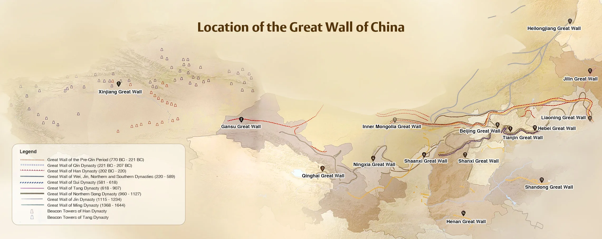 The location of the Great Wall usually relied on natural barriers, avoiding flat terrain as much as possible to increase the difficulty for nomadic cavalry to reach and cross. However, the Great Wall itself was like a highway, capable of transporting troops. The watchtowers distributed along the Great Wall could be used by soldiers for residence and storage of weapons and provisions, providing convenience for their own forces. Key passes, such as Shanhaiguan Pass and Jiayuguan Pass, served as crucial garrison points, allowing for both offensive maneuvers and solid defense.