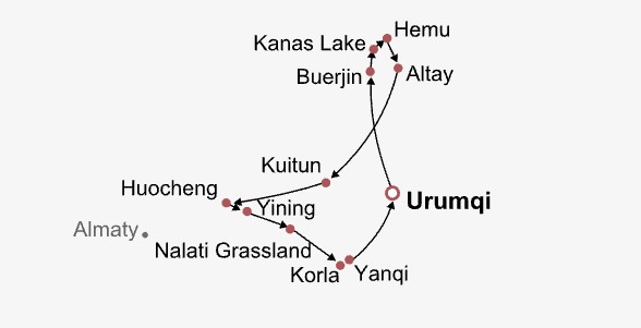 12 Days Urumqi - Buerjin - Kanas Lake - Hemu - Altay - Kuitun - Huocheng - Yining - Nalati - Bayanbulak - Yanqi - Urumqi from USD2479USD2181