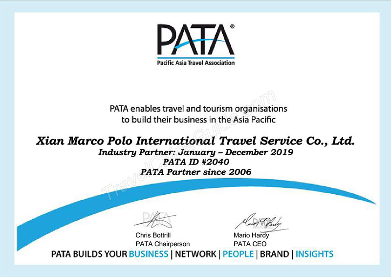 Secondly, check to see if the company is accepted by the authoritative tourism organizations. Our website (Xi'an Marco Polo Int'l Travel Service Co., Ltd.) has become a member of ASTA (American Society of Travel Agents), the world's largest association of travel professionals. Our member ID is 900207220. We have also been recognized and accepted as a member by Pacific Asia Travel Association (PATA), which is the leading voice and authority on Asia Pacific tourism. We kindly remind you that some companies claim that they are members of PATA by putting the PATA logo on their web pages;however about 80% of these so-called members are not real.A real member always has a membership number which is issued by PATA every year. One may tell if the company is a real PATA member in two ways, as follows: