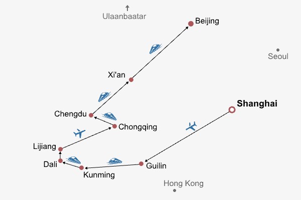 18 Days Shanghai - Guilin - Kunming - Dali - Lijiang - Chongqing - Chengdu - Xian - Beijing