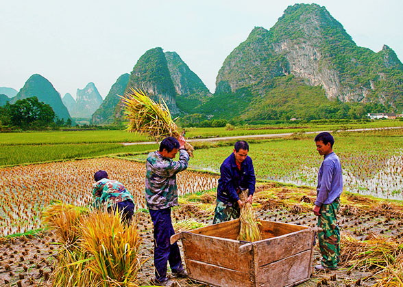 Take a Li River cruise from Guilin to Yangshuo; explore West Street and have a countryside tour; drive back to Guilin. (B+L)